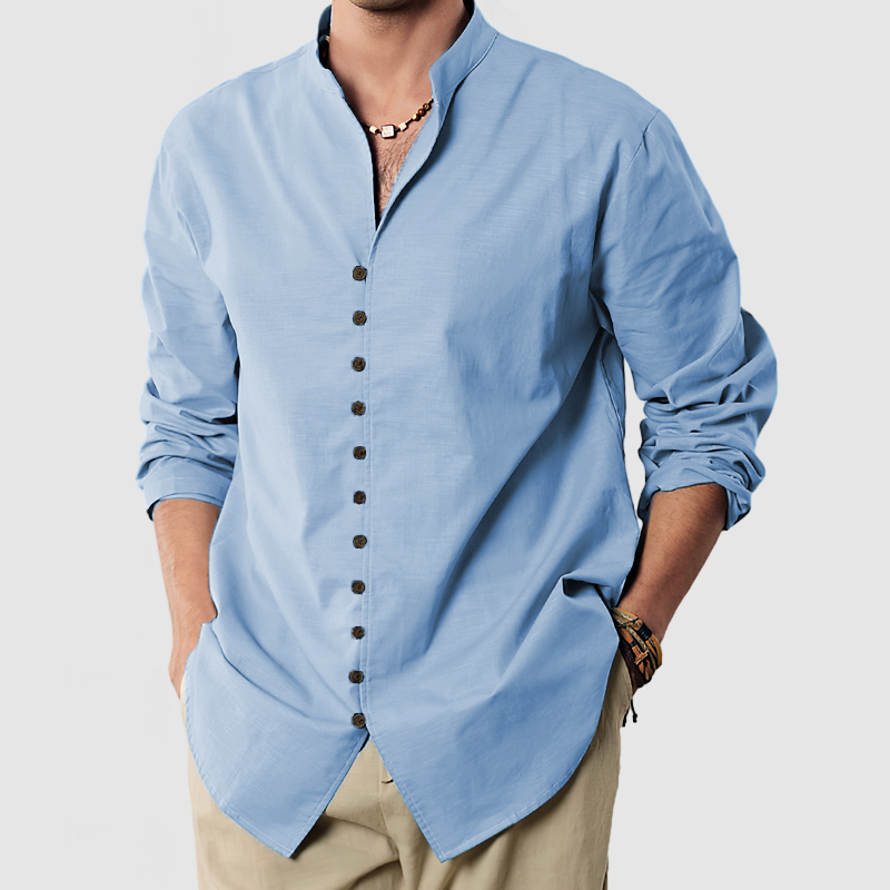 This shirt has a business-casual style element and is made from cotton And Linen, which is extremely breathable. This shirt is crafted from high quality cotton and linen fabric, making it comfortable and breathable to wear. The open neckline design can visually elongate your neck proportion, which is a great design! Simple and sharp cut, gentlemanly style everywhere! Whether for outdoor sports, leisure activities or social gatherings, this shirt will keep you elegant and gentlemanly for a long time.