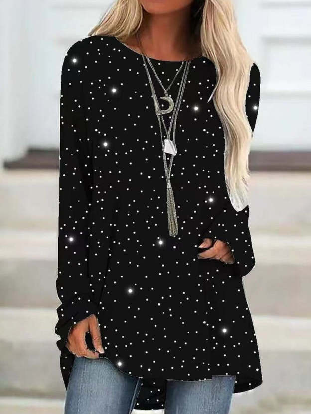 Knit sweater loose large size casual sequined T-shirt top