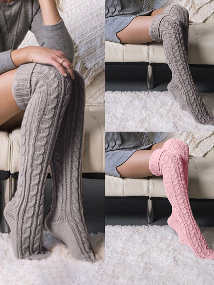 Twist Mid-Length Over The Knee Pile Wool Socks